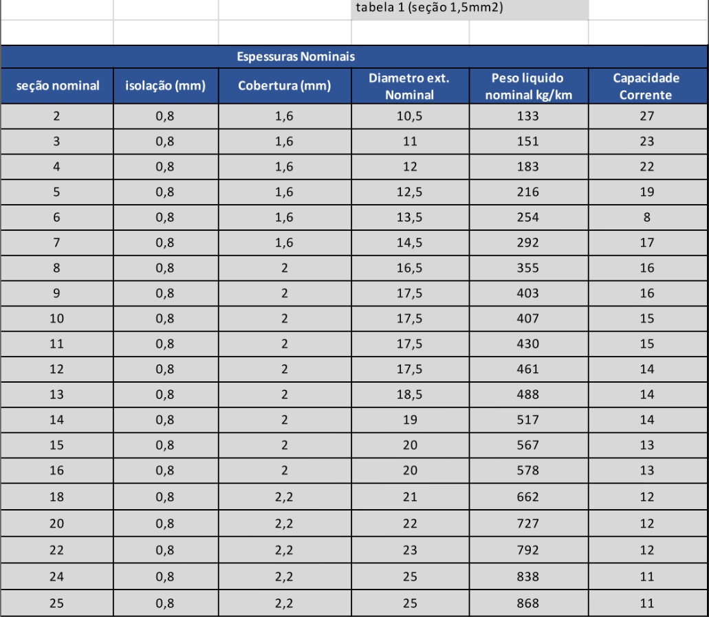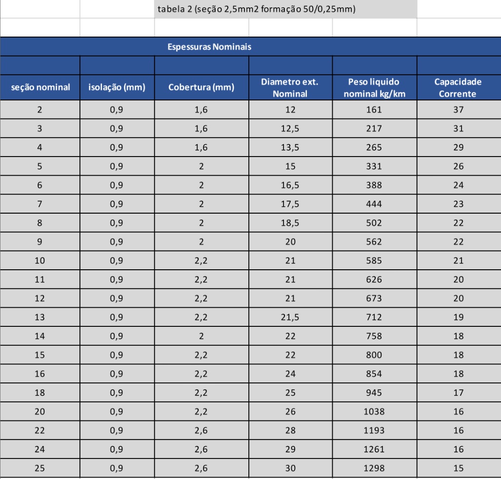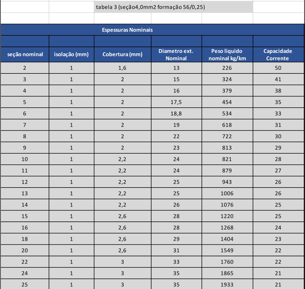 – Condutor: fios de cobre eletrolítico nú, têmpera mole, encordoamento classe 5.